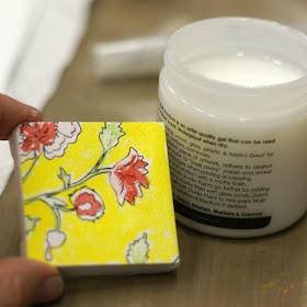 So we took the image, painted on a thin layer of gel medium and attached the paper to the canvas, pressed out any bubbles and then let it dry. It took about 30 minutes.
